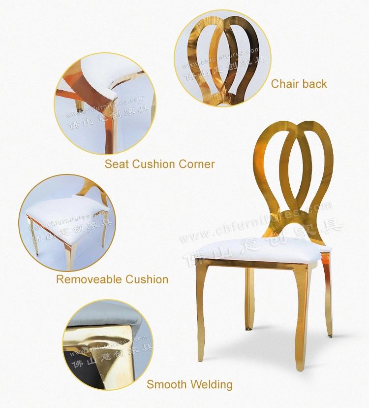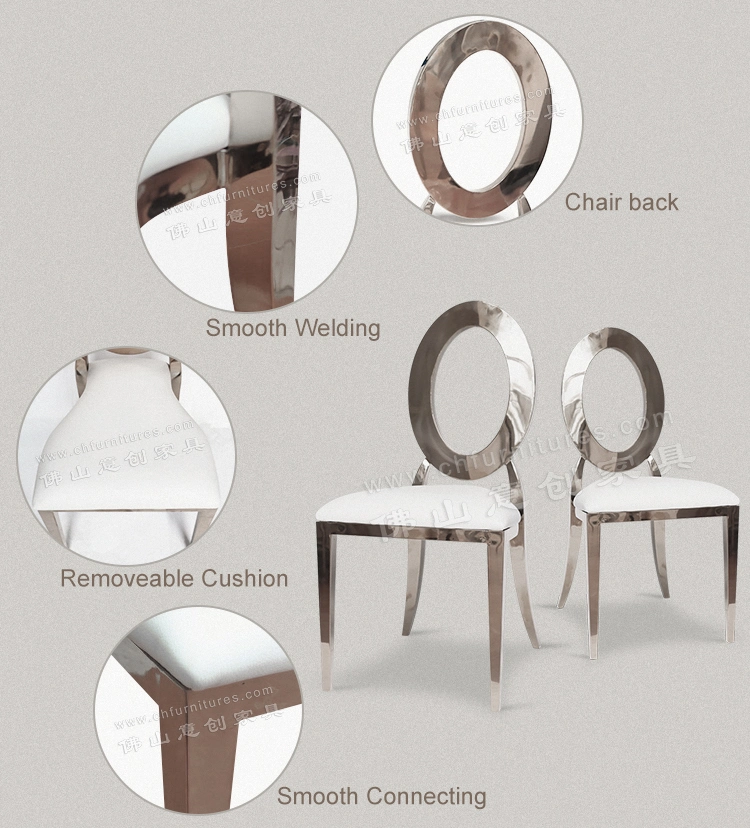 Product descriptionYC-SS133 Wholesale Stacking Silver Gold Hotel Banquet Wedding Rental Infiniti Dior Stainless Steel Party Chair for Event and Restaurnt with White LeatherStainless Steel Chair in Using by our CustomersQuick DetailBelow is Dining Chair Detail Information.Item NameChinese Stackable W......